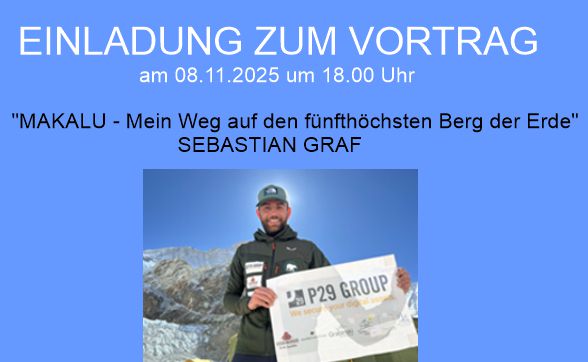 Ein Vortrag, der unter die Haut geht: Im Mai 2025 gelang dem Riedenburg Bergsteiger Sebastian Graf die Besteigung des 8.485 m hohen MAKALU im Himalaya - dem fünfthöchsten Berg der Erde. Als erst 18.Deutscher stand er auf dessen Gipfel. Die Expedition in Nepal dauerte sechs Wochen und war der Höhepunkt eines üer sieben Monate langen, intensiven Vorbereitungsprozesses - körperlich wie mental.
